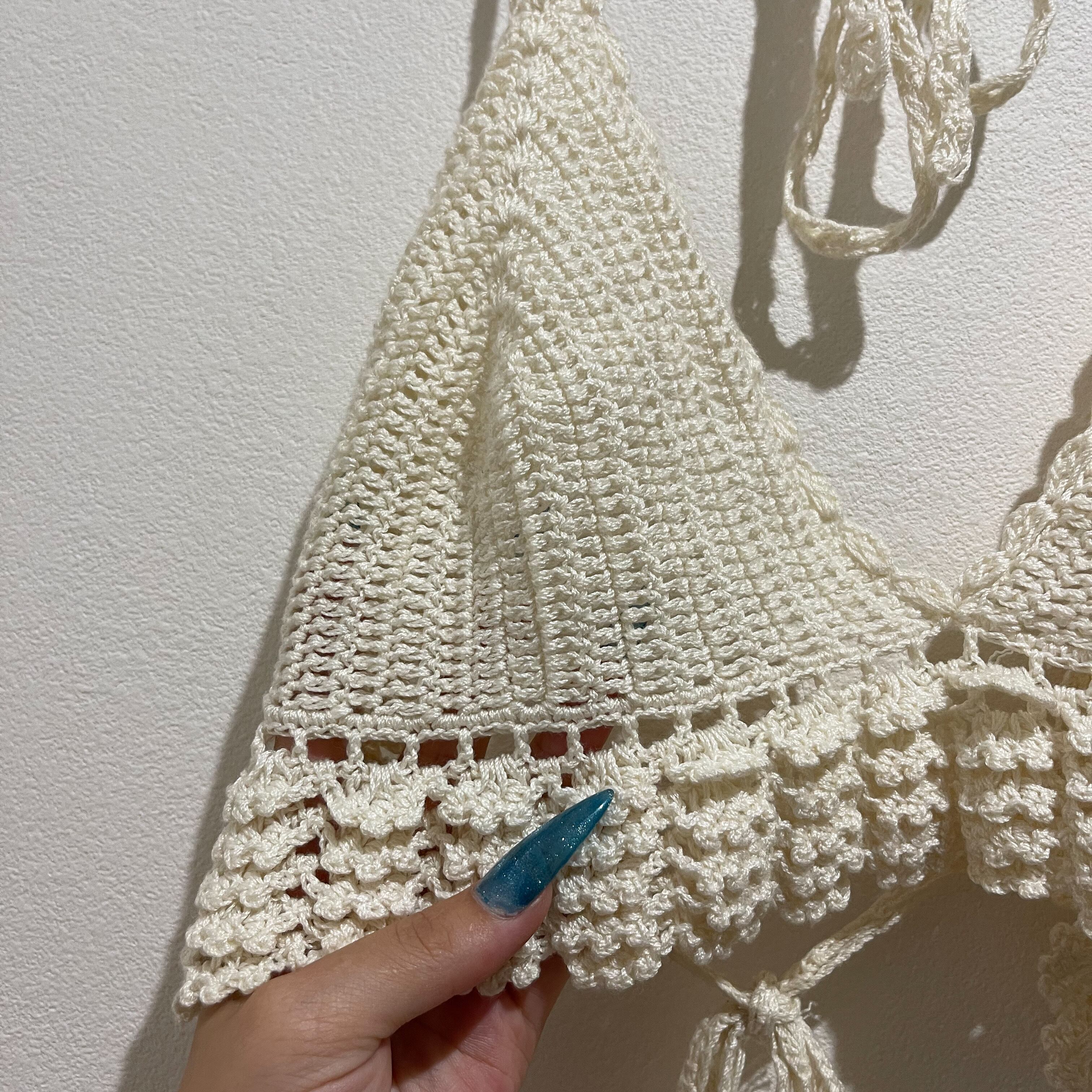 首とアンダー周りに紐があるのでそれを自分の体に合わせて結ぶことができます。